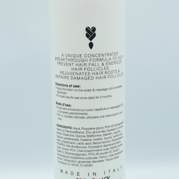 An Anti hair loss lotion that stops works on overall hair condition , stops the hair loss , renders a heathy looking hair , works on hair reconstruction and rejuvenation , protects the hair from harmful influencing exteriors and slows grey hair onset thanks to ingredients like horsetail extract , aloe vera , allantoin , methionine , kopexil , kopyrrol and linseed oil extract
